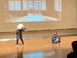 身体表現の発表では、昔話「三枚のお札」を題材にした劇を上演。
